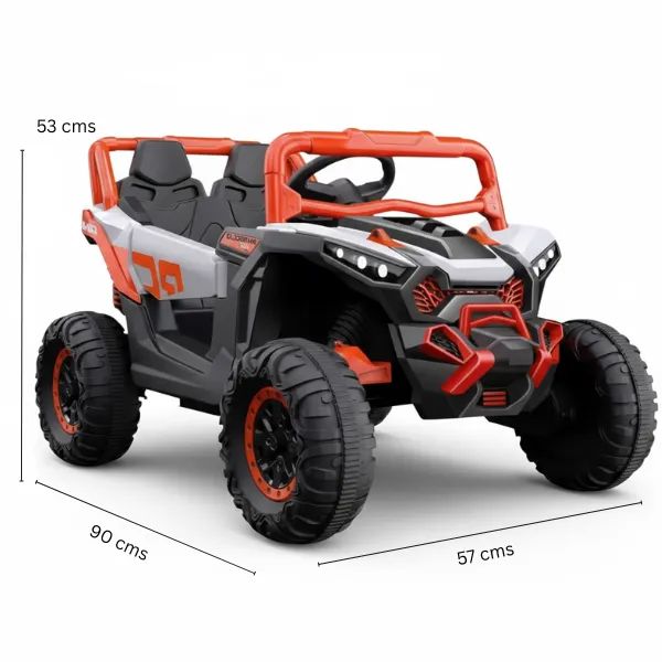 Equipped with remote control and mobile app control, parents can guide the ride safely while kids enjoy self-driving mode. The premium dashboard with built-in music system makes every drive more exciting, while the compact design ensures it fits perfectly for both indoor and outdoor play.